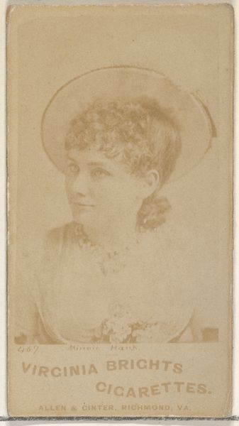 This small card, featuring Miss Pomeroy, was produced by Allen and Ginter for Virginia Brights Cigarettes. It's made of paper, printed with a photographic image, and was one of a series included in cigarette packs. The card's materiality speaks volumes about its purpose. Cheaply produced in vast quantities, its inherent flimsiness underscores its disposability. Yet, the image of Miss Pomeroy – likely a popular actress of the time – elevates it beyond mere ephemera. The printing process, a form of mass production, democratized access to imagery, making celebrity portraits available to a wider audience. Consider how this contrasts with traditional portraiture, typically the domain of the wealthy. These cards were essentially advertisements, designed to entice consumers to purchase cigarettes. The labor involved in producing both the cigarettes and the associated imagery highlights the complex relationship between consumer culture, marketing, and artistic representation in the late 19th century. The card reminds us that even seemingly trivial objects can offer valuable insights into the social and economic forces that shape our world.