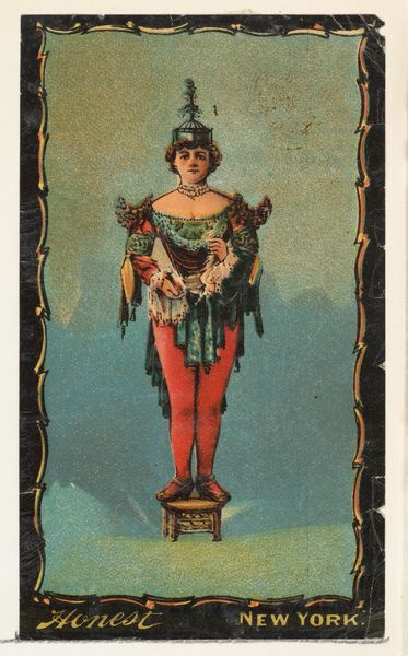 This small promotional card was produced by W. Duke, Sons & Co. around the turn of the 20th century to advertise Honest Long Cut Tobacco. These cards were originally packaged with tobacco products as a means of boosting sales. The card features a woman in theatrical costume. It’s likely that these cards offered not only a glimpse into the popular entertainment of the era, but also a reflection of the evolving roles of women in society. The actress here exudes confidence, her posture suggesting a departure from the demure depictions of women common in earlier periods. The costumes, often exoticized or romanticized versions of historical or cultural dress, presented a fantasy for consumers. These cards became highly collectible, offering insight into the cultural values, stereotypes, and aspirations prevalent at the time. As such, they provide a lens through which we can examine the complex interplay between commerce, representation, and identity in the late 19th and early 20th centuries.