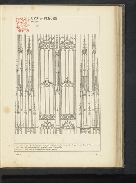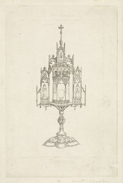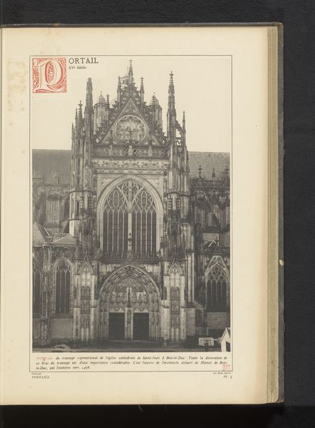 This print of the doors and towers of the Sint-Waltrudiskerk in Bergen, was created by an anonymous artist. It is rendered with ink on paper, using techniques of drafting and architectural illustration. Note how the precise linework captures the weight and scale of the cathedral's facade. Every line conveys a sense of depth and dimension, making the architecture feel monumental even within the confines of the page. The artist has used hatching and cross-hatching to create shadows and highlights, adding to the illusion of three-dimensionality. The print belongs to a longer history of architectural drawing, which served both practical and aesthetic purposes. While the print is clearly the result of skillful labor, its existence also speaks to broader social and economic factors. It reflects the importance of religious institutions in society. Ultimately, this print invites us to consider the many layers of meaning embedded within a seemingly simple image. It challenges us to look beyond the surface and appreciate the complex interplay of materials, techniques, and cultural values that shape our understanding of art.