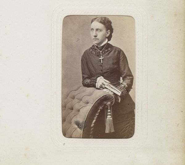 Ernst Wolffram made this portrait of a woman, using photographic techniques to capture the sitter's image. Photography in this period, though still relatively new, had become a potent tool for representation, especially for the emerging middle class. It democratized portraiture, making it accessible to those who could not afford to commission a painted portrait. The process involved the use of light-sensitive materials and chemical processes to create a lasting image on paper, a stark contrast to the lengthy and costly process of painting. Notice the woman’s dress and jewelry. These details aren't just aesthetic choices, but are carefully considered elements of her self-presentation, reflective of her social standing and taste. Photographs like this offer us glimpses into the lives and aspirations of ordinary people, challenging our understanding of history and representation, reminding us that art extends beyond the realm of painting and sculpture.