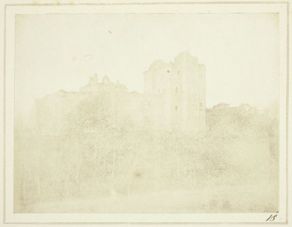 Editor: This is William Henry Fox Talbot's "Melrose Abbey," a photograph from 1844, rendered on paper. It has an almost dreamlike quality to it, a hazy glimpse of something ancient. What echoes of the past do you see here? Curator: Indeed, the hazy quality isn't a flaw but rather an invitation. The Abbey, even in ruin, remains a potent symbol. Think about what abbeys represented: spiritual solace, communal life, the slow accumulation of knowledge. To photograph a ruin, then, is to invoke both the presence and absence of these ideals. Editor: So the ruins themselves are a symbol of something lost? Curator: Precisely. But consider Melrose Abbey’s history. Raided multiple times during the border wars between England and Scotland. It carries not just spiritual weight, but a national, almost defiant one. Can you sense that resilience in the image? The abbey, even crumbling, refuses to disappear from memory. Editor: I see it now. It's not just about religious history, but Scottish identity too. The soft focus makes it feel like a memory, fading but still there. Curator: It’s as though Talbot is saying, "This place, this history, matters.” Consider the placement amongst gravestones. It represents generational loss. It acknowledges the weight of time and continuity with symbolic objects that were intended to mark human memory. The light is carefully distributed around each stone and suggests the presence of ancestors who want to keep their symbolic role in memory and continuity. What do you think is more emotionally potent, remembering or forgetting? Editor: Remembering, definitely. This makes me think about how photographs can hold onto memories that entire cultures might try to bury or distort. They fight erasure. Thanks for explaining that! Curator: My pleasure! Seeing such potent memories represented photographically has helped me visualize it even more clearly, also.