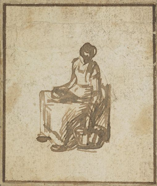 Editor: Here we have Rembrandt van Rijn’s "Kneeling Shepherd," a small but intense drawing. The figure is rendered with such swift, expressive lines. What's your take? Curator: It's like a whisper, isn't it? A fleeting moment captured. Rembrandt's charcoal almost dances across the page. I wonder what he was thinking, what story he wanted to tell. What do you feel when you look at this? Editor: A quiet reverence, almost. I love how simple it is. Anything else stand out? Curator: The implied narrative. Is he praying? Resting? The beauty lies in its ambiguity. It invites us to bring our own stories. Art is a mirror, isn't it? Editor: I never thought about the ambiguity. It is pretty cool! Curator: Exactly! It really gives us so much to think about.
