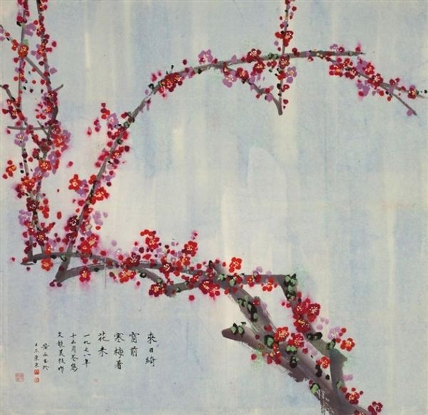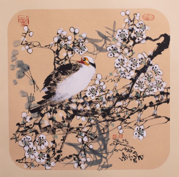 Editor: Here we have Dayou Lu's "Fragrance of Magnolia" from 2020, rendered in ink. It's striking how the composition uses so much white space. What symbolism do you see at play here? Curator: The white space is never truly empty; it's charged with potential, acting as a grounding force. In Asian art traditions, what appears missing often speaks volumes, inviting the viewer to actively participate and fill in the gaps. Look at the magnolia itself; it represents purity and nobility but also carries a sense of fleeting beauty. What does the bird evoke for you? Editor: I'd say it conveys a feeling of freedom and perhaps also the arrival of spring, like a harbinger. Does that connect to any deeper cultural meanings? Curator: Indeed. The bird is a powerful motif, embodying messages that vary across cultures. Its presence can represent everything from good news and swiftness to transformation and the soul's journey. This work reminds me of the interconnectedness between the natural world and the spiritual realm, rendered through traditional brushstrokes, which gives the painting its unique dynamic. How does calligraphy alter this perception, do you think? Editor: I see, calligraphy anchors the cultural context, making it seem almost like the poem gives voice to the silent magnolia and bird. It integrates words, image, and the artist’s soul into one complete vision. Curator: Exactly! Think of calligraphy as the artist's signature, an indelible expression of intent that intertwines text and imagery. The seals also signify something, yes? They create an intricate tapestry that ties the symbolism together in memory. Editor: Yes, they add authentication and artistic layers! This deeper look unveils stories of nature, cultural heritage, and symbolic language. Curator: Absolutely. The magnolia, bird, calligraphy, and empty space create an interwoven, multi-layered conversation!