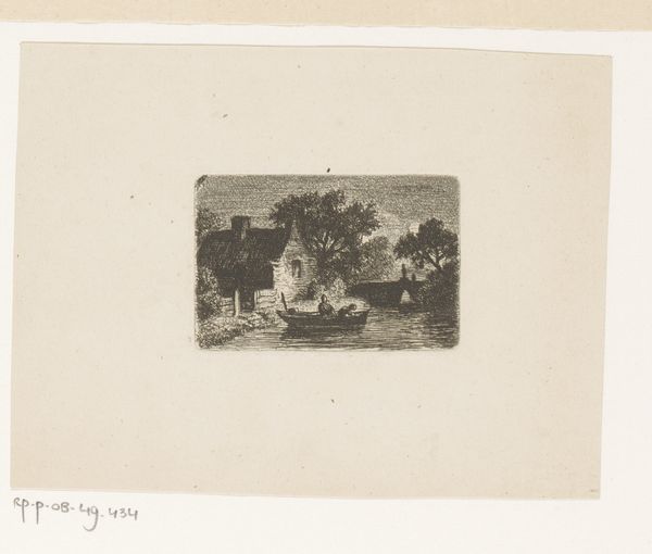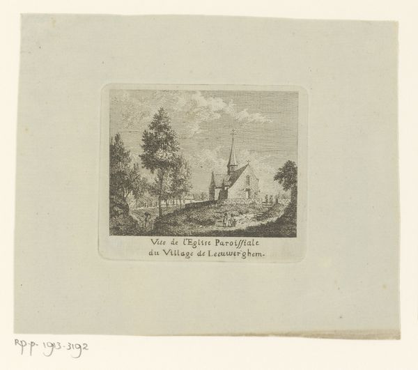 Editor: Here we have Jacques André Joseph Trachez’s “View of the Village of Leeuwergem,” created around 1790. It's a lovely little engraving. What strikes me is its delicate lines and the apparent care taken in rendering a common scene. What can you tell me about it? Curator: As a materialist, I look at how the very act of making this engraving shaped its meaning. Consider the copper plate: a valuable commodity reflecting the industrial processes even in a seemingly idyllic scene. The labor involved in engraving—a skilled trade—also elevates it above a simple depiction of landscape. How does this mass-produced print participate in the late 18th century art market? Editor: I hadn’t thought of the economics of it! It seems to be about presenting an ideal, peaceful vision of country life, not about participating in industry. Curator: But it’s both! The Romanticism you identified celebrates nature, sure. However, consider how this print reaches a wider audience, making landscape a commodity. Does that change how you view its “peaceful vision?" Editor: It makes me think about who *could* buy these prints and whose lives are shown here. Are we seeing a sanitized, romanticized version of village life intended for a specific consuming audience? Curator: Precisely. And by analyzing the paper quality, the ink used, and distribution methods, we gain insights into the networks of production and consumption operating at the time. Were these intended for local sale, or were they part of a broader trade network? Editor: This makes me consider the role of prints in shaping perceptions of place and class! Thanks for offering a totally new way of understanding this piece. Curator: The material existence of art always provides another layer to its story. Considering the labor of creation enriches my understanding too!