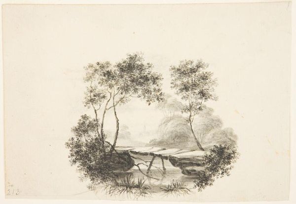 Editor: This is "Valley of the Dhoon from Landour" by Lt-Col George Francis White. It's a pencil drawing. There's something so peaceful and vast about the scene. What do you see in it? Curator: I feel drawn into the quiet stillness. It whispers of the British colonial gaze, doesn't it? White, a military man, framing the landscape, almost claiming it with his gaze and graphite. Do you sense that tension between observation and possession? Editor: I do now. It’s subtle but definitely there. Thanks! Curator: Indeed, a landscape both beautiful and weighted with history. A quiet masterpiece.