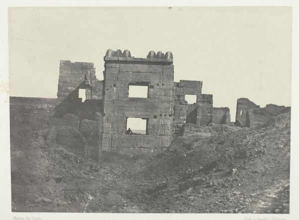 This photograph by Félix Teynard captures the ancient ruins of Médînet-Abou in Thebes, revealing the enduring motifs of ancient Egyptian architecture. The massive columns and imposing structures, though weathered by time, still speak to the power and permanence sought by the pharaohs. Consider the column, a symbol deeply rooted in various cultures. In ancient Egypt, columns, like those at Médînet-Abou, were not merely structural; they were often adorned with intricate carvings of deities and hieroglyphs, acting as conduits between the earthly and divine realms. We see echoes of these symbolic columns in the Classical world, in the temples of Greece and Rome, where they uphold not only physical structures but also philosophical ideals of order and reason. This impulse to reach for the heavens reflects a shared human aspiration, passed down through generations, and embedded in our collective psyche. These architectural ruins inspire a sense of awe, reminding us of the cyclical nature of civilization.