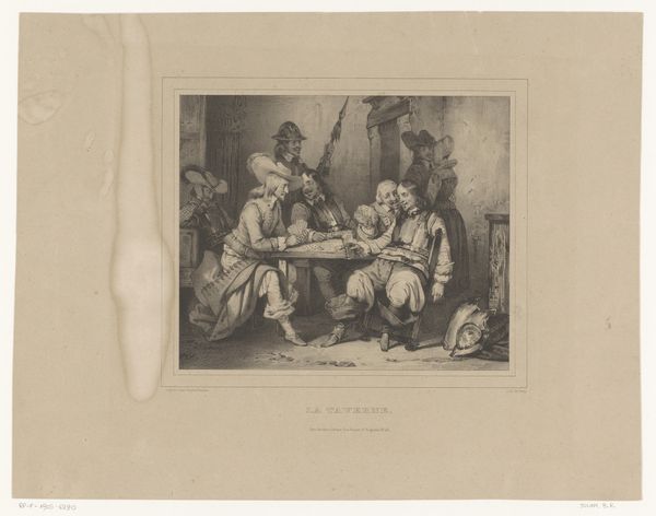 Pierre François Basan created this print titled 'Kaartspelers' or 'Card Players'. It offers us a glimpse into the social dynamics of 18th-century leisure. This scene of men gambling transcends a simple pastime, reflecting the complex interplay of class, gender, and social status. The act of gambling itself can be seen as a microcosm of societal power dynamics, where fortunes can be won or lost, mirroring the economic disparities of the time. Basan's choice to depict this everyday scene invites us to reflect on how leisure activities were often exclusive to certain classes, reinforcing social hierarchies. Notice how the players, likely men, are depicted indoors, in what appears to be a tavern. The setting suggests camaraderie but also exclusion, as women were largely absent from such public spaces. Consider how the simple act of playing cards embodies deeper social narratives about identity, access, and power.