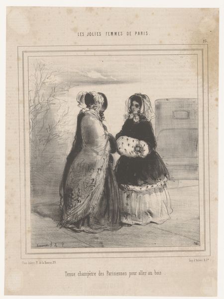 Editor: This engraving, titled "Vrouw een andere vrouw een kruik aanbiedend" (Woman offering a pitcher to another woman) is attributed to Isaac Weissenbruch and was created sometime between 1836 and 1912. It depicts several figures in a seemingly domestic setting. The composition and delicate lines lend a rather somber, pensive mood. What stands out to you from a formalist perspective? Curator: The lines, yes, precisely! Note how the artist employs varied line weights and densities. Thicker, more deliberate lines define the foreground figures, anchoring them visually, while the background figures recede through the use of thinner, sketchier marks. Editor: That's a good observation about the line variation and its effect on depth. Curator: Further, observe how the internal lines—those delineating the folds in the drapery, for instance—contribute to a sense of volume and texture. Consider the semiotic value of this formal choice; the cross-hatching technique builds areas of shadow that articulate space and form. Editor: The cross-hatching gives the artwork visual richness! Curator: It’s crucial to note how this graphic piece adheres to Academic artistic values. Weissenbruch has clearly given attention to creating the impression of spatial recession with the careful handling of his lines, the foreshortening, and atmospheric perspective. How effective do you find this use of spatial construction and technique to achieve verisimilitude in this medium? Editor: It is convincing and intriguing at the same time, particularly considering the drawing doesn't have color and uses a fairly basic technique to produce depth. I find the focus on technique a powerful approach. Curator: Indeed. We often search for complex narratives when sometimes, it is enough to focus on structure and technique to enjoy a piece. Editor: Precisely. This approach highlights how the most important and complex meanings sometimes emerge from the intrinsic visual language.