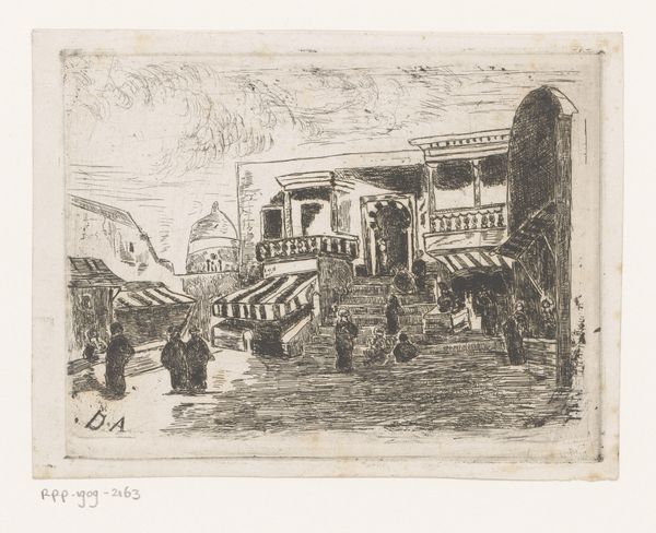 This is David Young Cameron’s etching of Alkmaar, likely created at the end of the 19th century. Cameron here engages with the social and cultural landscape of the Netherlands. The artist renders a bustling town square with figures engaged in everyday activities, with a heightened interest in the built environment. The composition is carefully arranged to guide the viewer's eye through the scene, focusing on the architecture of Alkmaar. Alkmaar, a Dutch town with a rich history, provides a specific context for understanding the image. The town's geographical location and its historical role in trade and commerce might have influenced Cameron's choice of subject matter. For those interested in further exploring Cameron’s engagement with social and institutional histories, one could consider researching the artist’s early exhibition history and the cultural trends of the time.