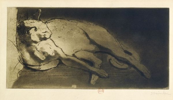 Paul Gauguin, a leading Post-Impressionist artist, made this print, "Liggend meisje bang voor geesten van overledenen," whose title translates to "Lying girl afraid of spirits of the dead," using zincography. Gauguin spent extended periods in French Polynesia where he sought an escape from European civilization. This print reveals the complexities of cultural exchange and representation. The print depicts a Tahitian woman in a state of fear, reflecting Gauguin's fascination with the spiritual beliefs of the local people. The woman's vulnerability speaks to the broader dynamic of colonialism, where indigenous populations were often subject to the anxieties and disruptions brought by foreign influence. Gauguin once said, "I shut my eyes in order to see." With the image title, we can understand that Gauguin is trying to depict something beyond the visible, delving into the realm of emotions and the subconscious. While the artwork captures a specific cultural moment, it also raises questions about the universal human experience of fear and the power of belief. It encourages us to reflect on the intersection of personal emotions and cultural narratives.
