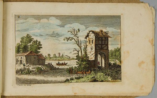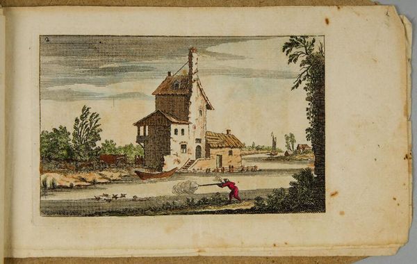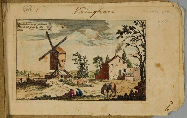 Editor: This is François Vivares' "Landscape with a Farmhouse and a Hexagonal Windmill," a small plate etching. It's charming, almost like a child's drawing. What catches your eye in this piece? Curator: I'm drawn to the labor embedded in this seemingly simple landscape. The windmill, the farmhouse—these aren't just picturesque elements. They represent production, the material transformation of the land for consumption. Notice the crude textures, the visible marks of the etching process; these emphasize the hand of the maker. Editor: So, you're seeing beyond the pastoral scene to the work behind it? Curator: Precisely. The print is an object produced for consumption, and the image itself depicts sites of production. Consider the social context: who owned the windmill, who labored there? These questions unlock deeper meanings. Editor: That’s a completely different way of seeing this. I'll never look at a landscape the same way again. Curator: Indeed, considering materiality helps us appreciate the layers of meaning embedded within seemingly simple artworks.