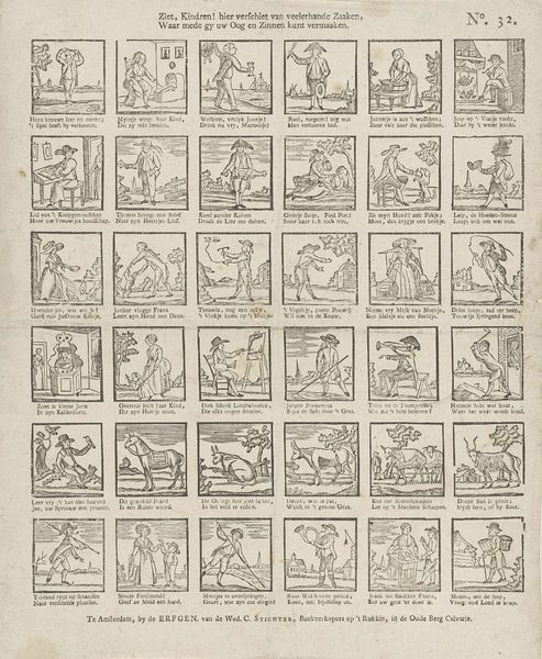 This broadside, created by Antonio Bosch in Mexico between 1860 and 1880, offers a window into the everyday lives and social values of the time through its 48 miniature scenes. Bosch, an artist active during a period of significant social and political change in Mexico, uses the broadside format to disseminate his observations widely. The visual codes within each scene—clothing, activities, and interactions—provide clues about the social hierarchy and cultural norms prevalent in Mexican society. The presence of religious figures and the depiction of agricultural labor suggest the importance of religion and rural life in the collective consciousness. How might these images reflect the prevailing social and political tensions of the time, such as the struggle for land reform or the rise of national identity? To understand this work more deeply, we could delve into historical archives, exploring period newspapers, pamphlets, and other ephemera to grasp the broader social context in which Bosch was working. Such research reveals art's profound role as a mirror reflecting and shaping the society that produces it.