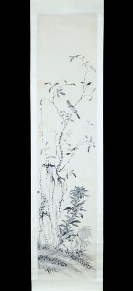 Sakaki Hyakusen's ink on paper artwork, Bamboo and Rock in Snow, presents us with a study in contrasts. The stark monochrome palette immediately draws attention to the composition’s structural elements. Hyakusen employs the principles of traditional literati painting. Notice how the delicate brushstrokes define the bamboo leaves against the heavier, textured strokes depicting the snow-laden rock. This juxtaposition isn't merely representational; it embodies the philosophical tension between resilience and the transient nature of existence. The bamboo, rendered with precise, dark lines, resists the weight of the snow, a metaphor for endurance. Meanwhile, the soft gradations of ink wash suggest the ephemeral quality of snow, melting away to reveal the underlying strength of the rock. This interplay highlights a semiotic dialogue: the bamboo represents steadfastness, while the snow signifies impermanence. The artwork destabilizes the fixed notions of strength and fragility. Consider how Hyakusen, through formal choices, invites us to reflect on the dynamic relationship between opposing forces.