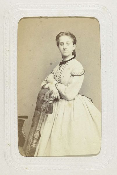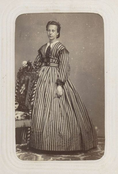 Editor: So, this is "Portret van de Comtesse d'Estreuve de Saint-Jean," taken sometime between 1860 and 1873 by Nadar. It’s a photograph, albumen print I believe, at the Rijksmuseum. She looks rather stoic and elegant. What strikes you about it? Curator: What interests me is the photograph’s status as a cultural artifact. Nadar was a prominent figure, using photography not just for documentation but also for shaping public perception. Think about it: this portrait presents the Comtesse not simply as an individual, but as a representation of her class. How does Nadar use the relatively new medium of photography to either reinforce or challenge existing social hierarchies? Editor: That's interesting. I hadn’t thought about it in terms of power dynamics. Curator: Consider the Comtesse's attire, her posture. These are carefully constructed elements. What do they tell us about the role of women in the mid-19th century and the image they were expected to project? Also, ponder on where such photography may have been seen – the accessibility and publicness it had, and therefore the dialogue with the public sphere. Editor: Right, it's more than just a pretty picture. It speaks to larger social roles. Were there specific conventions that photographers like Nadar had to adhere to when portraying members of the aristocracy? Curator: Absolutely. Think of painting traditions and how those aesthetics translated to photography. The lighting, composition, even the subject’s expression were all carefully managed to convey status and respectability. By understanding these conventions, we can better interpret the subtle ways in which Nadar might have been either reinforcing or subtly subverting them. How might it compare to painted portraits, do you think? Editor: This has been so insightful, I now have a whole new perspective of the image. Curator: Indeed! Reflecting on the photograph through this lens lets us appreciate the ways photography became interwoven with the evolving cultural and political landscape.