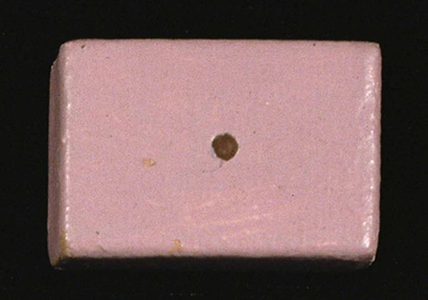 Editor: We’re looking at “Micro-Painting” from 1968 by Gene Davis. It’s… well, it's incredibly minimal, almost like a study in basic shapes. The muted tones also give it a kind of quiet presence. What do you see in this piece, beyond its obvious geometry? Curator: It’s interesting you pick up on the quietness. To me, the geometric forms, a circle embedded within a rectangle, resonate with a very ancient visual language. Think of mandalas, the sun inside the earth, a contained universe. What happens when the shapes are pared back to the absolute minimum, to something almost like a child's block? Do we lose meaning, or does that initial symbolic charge persist? Editor: That’s fascinating. I hadn't considered that kind of deeper symbolism, seeing it more as an exercise in form, a reaction to the expressionism that came before. Curator: But isn't that the beautiful thing about minimalism? On the surface, it seems to reject overt symbolism. Yet, by stripping everything else away, it allows these fundamental shapes to carry a much heavier weight. The eye seeks out meaning. Davis is asking: how much information does an image actually need to retain its emotional power? Does this make sense? Editor: It does! The reduction forces us to contemplate the symbolic charge these forms carry. And I do find that a powerful point regarding how our mind fills the gaps and needs for information and how in certain ways they resonate over time. I had overlooked that possibility! Thanks for opening that up for me. Curator: My pleasure. It makes one think of the potency held in simple visual structures, echoing even in modernity. I think I also gained a fresher view as you described its initial 'quiet presence.' Thank you!