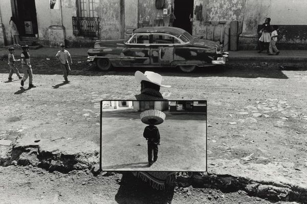 Curator: Jim Goldberg created "Hollywood Freeway #1" in 1989. It's a stark black and white photograph, seemingly capturing a figure teetering on the edge, both literally and perhaps metaphorically. Editor: There's a real sense of tension, wouldn't you say? The composition is so unbalanced. That figure with arms outstretched, almost like they're about to…well, it creates an unsettling feeling of precariousness. And the texture! The grimy pavement versus the smoothness of the highway… it's a strong contrast. Curator: The setting is significant. Goldberg often explored marginalized communities and societal divides. Placing this figure, seemingly vulnerable, at the precipice of the Hollywood Freeway, speaks to the isolating and often dehumanizing effects of urban sprawl and economic disparity. The freeway, usually a symbol of connection and opportunity, becomes a barrier here. Editor: It's interesting how the figure's anonymity enhances that sense of universality. We don't see a face, just the bare back and worn jeans. The eye is drawn to the lines of the body, the curve of the spine, the reaching arms. Semiotically, it reads almost like a plea, or a desperate attempt at balance. Curator: Indeed. Goldberg often collaborated with his subjects, incorporating their own words and experiences into the work. While we don't have that direct element here, knowing his practice, it’s likely the image is born of a deeper engagement with the social realities of that time and place. Consider also the broader context of the late 1980s in Los Angeles - a period marked by increasing homelessness, social unrest, and a growing divide between the haves and have-nots. Editor: I keep coming back to the light and shadow. The stark monochrome isolates form, almost forcing the viewer to contemplate the essential nature of the depicted figure and its spatial relationships. It’s not pretty, and intentionally so. Curator: It's a challenging photograph, certainly, but one that compels us to consider the social narratives embedded within seemingly ordinary scenes. It reveals uncomfortable truths about urban life. Editor: Absolutely. It prompts us to look closer, not just at the photograph, but at the world around us and to consider the spaces and states of precarious balance, literally and figuratively.