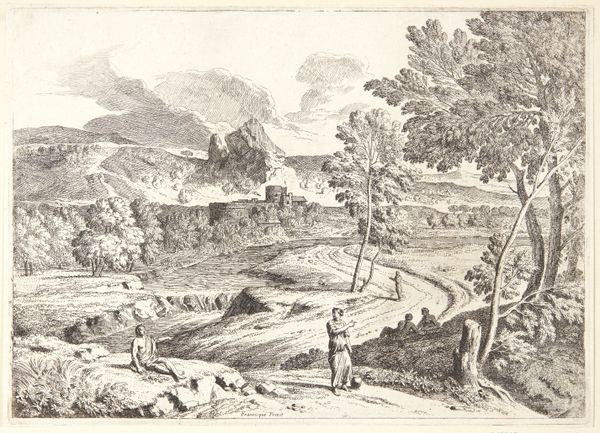 Editor: So, here we have "The Quarry," a landscape drawing rendered in ink by James Ward. I’m immediately struck by the contrast; there's this rugged, almost harsh, terrain, yet it's presented with such delicate lines. It feels very intentional. What's your read on it? Curator: It's a powerful piece, isn't it? Ward’s “The Quarry” whispers of transformation. The harsh lines and seemingly desolate landscape initially present a picture of industry and its impact, sure, but squint a little. Do you not see resilience etched into those rocks? Editor: Resilience? I see the…erosion. Curator: Exactly! Erosion IS resilience. The quarry is more than a scar. Ward has captured, for me, the beauty inherent in how the landscape reforms and finds a new existence. Think about it: the vegetation is beginning to encroach on the rock face, softening those harsh angles, almost as if nature is reclaiming its own. Editor: I suppose that’s why it doesn’t feel entirely bleak. The trees in the background seem almost untouched, juxtaposed against the exposed earth. Curator: Precisely! The interplay of light and shadow… it's an ongoing dialogue. It shows you not just where something has been taken, but also hints towards renewal and rebirth. What initially felt like desolation begins to morph, if you're ready for it, into hope and new beginnings. Editor: I definitely see that now. The composition almost forces you to confront that duality. I walked in thinking about the negative impacts of extraction, and now I'm contemplating something deeper about adaptation and change. Thanks for that! Curator: My pleasure. Isn’t it funny how a quarry, a symbol of taking away, can reflect the world adding back, bit by bit? Just gorgeous.