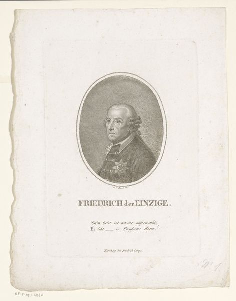 Editor: Here we have a striking portrait, an etching and engraving of Frederik IV, dating somewhere between 1767 and 1824 by Andreas Flint. The detail is amazing and it certainly gives off an air of royal authority. What captures your eye most when you look at this print? Curator: Ah, Frederik! Well, besides the powdered wig and steely gaze—you know, the usual kingly accoutrements—I’m really drawn to the artist's hand, Andreas Flint. Think about the painstaking work of etching and engraving; each tiny line, each precise stroke meant to convey not just likeness, but status. This wasn't a quick snapshot. Editor: It looks like the baroque style favored strong lines and detail to project an image of strength and prosperity. What do you think it says about the King and the state of Denmark and Norway? Curator: Exactly! It's visual propaganda, of course. Think of it as a 18th-century headshot! Frederik wanted to be remembered. Andreas Flint gives the king a look of supreme authority, though one also wonders about the artist's perception, or maybe I'm reading into it a bit. Does Frederik really look powerful, or just... well, burdened by the armor and wig? What do you see? Editor: That's fascinating; now I see the nuance in the subject's expression. All the subtle messaging an image can contain! Curator: Precisely! Next time you see a portrait, look beyond the surface, imagine yourself transported through time, look through the artist’s eyes… it adds layers, doesn't it? Editor: Absolutely. Thank you so much, I have so much to think about!