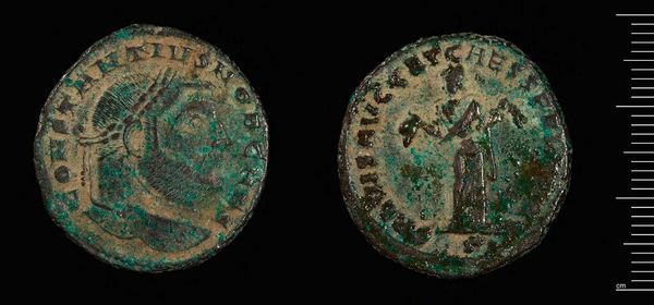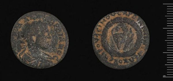 Editor: Here we have a coin of Thessalonike under Philip I, the Arab. Given its weathered condition, it evokes a sense of history. What can you tell me about this piece? Curator: This coin speaks volumes about the power dynamics of the Roman Empire and the integration of diverse identities. Philip’s Arab heritage, often downplayed, is crucial. The coin signifies his rule and also embodies a negotiation of Roman and Arab identities. How might this object challenge traditional narratives of Roman emperors? Editor: So, it's not just about Roman history, but also about understanding how different cultures interacted and how power was expressed. That’s a valuable perspective. Curator: Exactly. It allows us to reconsider the narrative and include marginalized voices.
