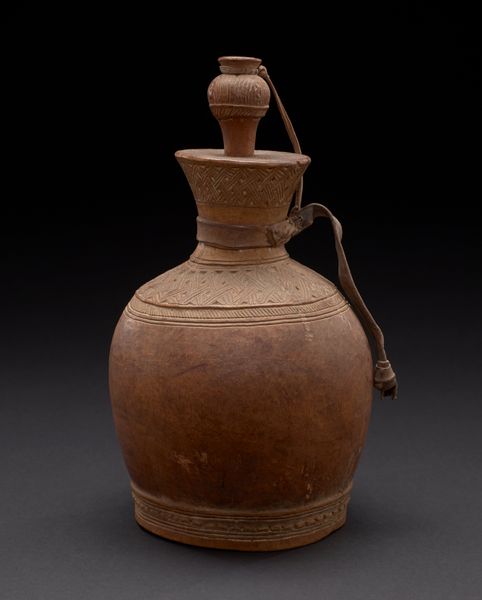 This vase with stopper by Sundi sits in the Minneapolis Institute of Art. It's earthen, solid; the surface is a terrain of warm browns. I love how the texture is so present. It's not trying to be slick or perfect, which I always appreciate in art. You can see the artist's hand, the way the clay was worked, almost like you're right there in the studio with them. The dark lines, almost like delicate veins, crawling across the surface. They remind me of patterns you'd find in wood grain or even the lines on a map, leading you somewhere. It’s like the vase holds stories, or the potential for them. The colors are so earthy, really grounding. This vase reminds me of some of Lucie Rie's work, but maybe with a little more grit. Both artists have such a clear understanding of their medium. Ultimately, it's a beautiful reminder that art doesn't have to be loud to be powerful.