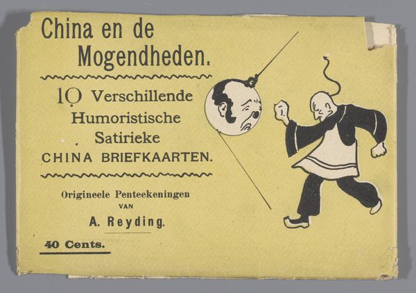 Editor: So, this whimsical print, “Aankondigingsblad van Jan Klaassen, 1903,” is by Bernard Willem Wierink, and it seems to be announcing something related to Jan Klaassen, who I gather is some sort of Punch-and-Judy-like character. The style is decorative and flat, a bit cartoonish and very retro-vintage! I’m struck by this unusual array of characters parading across the front. How do you interpret their presence in promoting Jan Klaassen's… book? Curator: Oh, how delightful! I see it as a spirited dance between the old and the new, wouldn't you agree? Wierink has really captured something with that vibrant color lithograph, a delicious glimpse into early 20th-century advertising and popular culture. Those aren’t just random characters, I think, they are a stage play of representation, each perhaps embodying a stereotype that Jan Klaassen both celebrates and mocks. The exotic ‘other,’ the naive maiden, the stern patriarch. But is this just a merry endorsement, or are there deeper themes? Editor: That's interesting, I hadn't thought of the stereotypical aspect. It almost feels uncomfortably… staged, now that you mention it, not entirely innocent, if that makes sense? Curator: Precisely! This playful image beckons, yes, but don't you think there are traces of a much more complex tapestry of colonial gaze, gender roles and socio-cultural assumptions lurking just beneath the surface? Is it joyful nostalgia or commentary? Editor: Okay, I get that tension now, it's not a straightforward image, the characters don't resolve neatly, visually, either! I’m beginning to see the work as not just advertising, but a piece with social commentary embedded in it. I really like how the art nouveau style gives the work an inviting flair but almost disguises how charged it is. Curator: Wonderful! We sometimes forget, these little posters hold whole universes. And now it’s forever whispering its secrets to us.