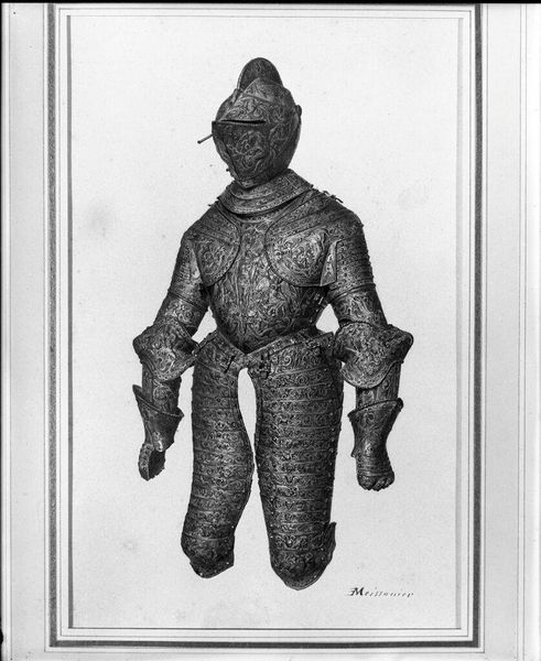 Editor: Here we have a suit of metal armor, simply titled "Armor", dating from somewhere between 1500 and 1900. It's imposing, standing so rigidly. What can you tell us about how it reflects its time? Curator: This armor offers a glimpse into the complex social and political landscape of its time. Though its dates span several centuries, we can speak to what armor like this represented. How was power visually constructed and performed in these historical moments? Editor: That's fascinating. Could you elaborate on this idea of "performance"? Curator: Armor transcended mere protection; it served as a potent symbol of status, wealth, and martial prowess. Each element, from the intricate decorations to the polished surfaces, communicated messages about the wearer's identity and position in society. Who do you think got to wear a set of armor this detailed? Editor: I imagine only the wealthiest and most powerful members of society? Curator: Precisely! And think about the skilled craftsmanship required to produce such armor. These objects underscore the presence of specialized artisans, the control of resources, and established systems of patronage within courtly settings and state governance. Also, how do you think the display of this armor today in a museum contributes to its continued power as an object? Editor: It makes it almost like a sculpture or a statue, removed from its original purpose. We're invited to admire the craft but maybe lose sight of its functional role. Curator: Right, we should consider how its aesthetic qualities and historical associations are activated, especially when positioned within the context of museum display. Thank you for those insights! Editor: It was also a really useful to examine not just its construction, but how it has signified social roles and power, both on and off the battlefield.
