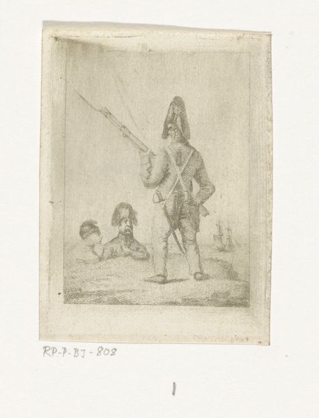 This print, made by Johann Friedrich Gottlieb Unger around the late 18th century, presents a stark juxtaposition of figures: a dark-skinned man, scantily clad, and a man in a toga-like garment, possibly Jewish, with a raised hand. The raised hand, a gesture of speech or blessing, echoes through centuries, from classical oratory to religious iconography. Consider its recurrence—in Roman sculptures, Christian depictions of Christ, and even contemporary political discourse. This gesture, laden with authority and communication, finds a complex counterpoint here. The contrast between the figures extends beyond attire; it speaks to cultural and societal divisions. The dark-skinned man's posture, seemingly open, meets the robed man's gesture, creating a visual dialogue, perhaps of power, perhaps of enquiry. This dynamic, charged with historical context, invites us to reflect on the evolution and interplay of symbols across time, and their resonance in our collective psyche.