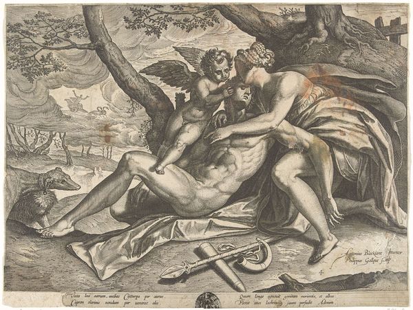 This engraving, made by Bartholomeus Willemsz. Dolendo, depicts Pluto and Ceres locked in an embrace, an eagle at their feet. The image overflows with symbolic meaning. Ceres, goddess of agriculture, is adorned with wheat, emblems of fertility and the harvest. Pluto, god of the underworld, clutches a scythe, a reminder of death's harvest. These figures aren't merely characters in a classical myth; they embody elemental forces, cyclical renewal, and the dance between life and death. Consider Ceres’s wheat, and how that motif resurfaces time and again in art across cultures, evoking not just abundance but also the deep-seated human hope for renewal. This image speaks to a collective memory, an unconscious recognition of the enduring power of nature’s cycles and the emotional weight of loss and regeneration. The intense, almost desperate embrace captures the eternal tension between these opposing forces, engaging viewers in a deep, subconscious awareness of mortality and rebirth. Just as the seasons turn, so too do symbols evolve, constantly resurfacing, transformed yet retaining their fundamental power.
