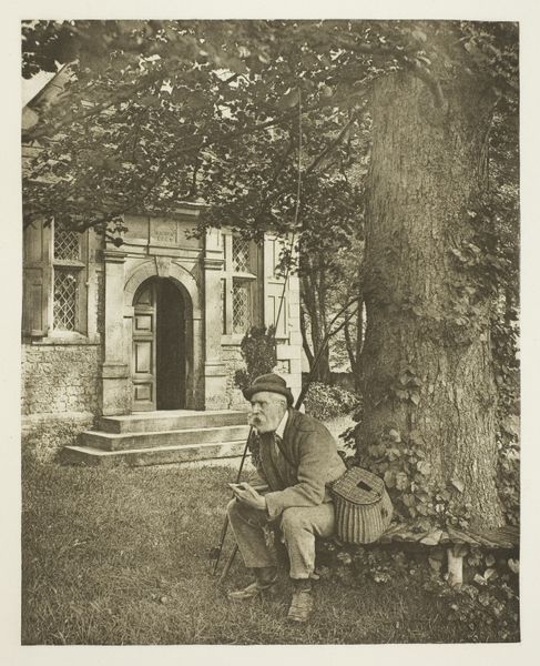 This photograph captures Charles Leconte de Lisle, though the artist remains unknown. The sepia tones and the composition invite us to consider its structure formally. The subject is positioned centrally in the doorway, a liminal space between the interior and exterior, creating an interesting binary. The stark geometry of the door frame contrasts sharply with the organic, almost wild overgrowth of the surrounding foliage. The subject's figure is balanced, holding a book, which acts as a visual anchor, and his posture, with legs crossed, lends a sense of relaxed intellect. In terms of semiotics, this piece challenges fixed meanings. The doorway and overgrown nature act as cultural codes. Is this a transition from classical learning to the chaos of modernity? The figure's calm demeanor suggests a reconciliation of these opposing forces, an openness to re-interpretation. Consider how the photograph, through these formal choices, invites a dialogue on knowledge, nature, and the very act of observation. The photograph destabilizes established meanings.