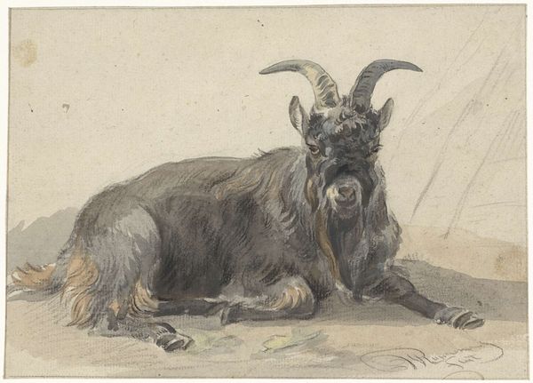 Curator: Oil on canvas, portraying a solitary animal, stark against the muted backdrop… It's Courbet’s "Head of Gazelle." There’s something compellingly direct in the animal’s gaze. What stands out to you? Editor: The thickness of the paint is pretty apparent and adds such a tangible texture to the image. How did the materiality impact the animal's image or the process itself? Curator: Precisely! The impasto technique is important. We see the labour, the sheer physicality of applying the paint. For Courbet, it was less about idealising the gazelle and more about truthfully capturing its essence using humble materials like oil and canvas. Think about how that disrupts established art world hierarchies! The “high” art subject of a portrait is now combined with “low” art materials treated very matter-of-factly, breaking down those cultural boundaries. Does that strike you as a meaningful gesture? Editor: Absolutely. Using impasto is already a kind of political statement to draw attention to the artwork and material. Do you think the average viewer understood this in Courbet’s time? Curator: That's a question! Courbet challenges academic painting with his material handling. The thick paint forces viewers to reconsider how art is made and consumed. Think of artmaking as labour... Were they equipped to look at painting that way, outside traditional ideas of beauty or virtuosity? Editor: It’s certainly a work that invites questioning, even today. Thanks for clarifying how material connects to context here. Curator: My pleasure. Materiality offers a compelling way to view art!