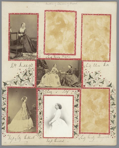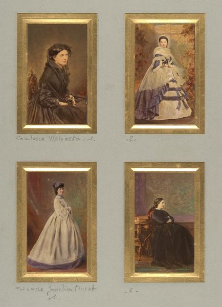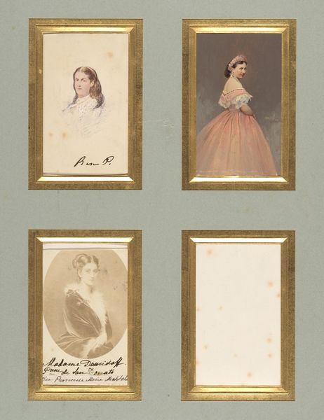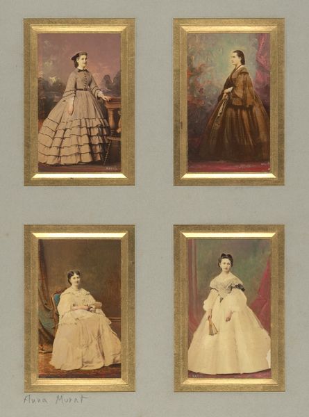 These four albumen silver prints with applied color, of unknown sitters and the Duchesse de Morny, were made by Pierre-Louis Pierson, a French photographer active in the mid-19th century. Photography in France was heavily influenced by the social and political climate of the time. In the Second Empire, when this photograph was likely made, the court of Napoleon III was known for its lavishness and extravagance. The rise of photography as a popular medium coincided with the increasing importance of image and representation in society. These portraits reflect the era’s obsession with status and fashion, as they document the elaborate dresses and poses of their subjects. To fully understand this image, a historian might look to fashion plates of the time, conduct genealogical research, and study primary sources from the Second Empire. The social conditions that shaped this kind of artistic production reveal how art and photography reflect and reinforce the values of their time.