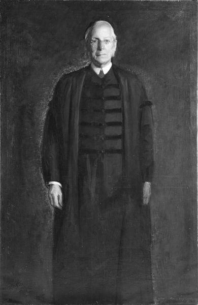 Editor: This is Niels Hansen's "The Architect Carl Petersen," painted between 1895 and 1921. It’s an oil painting, and what strikes me is the seemingly unfinished background – it feels so modern and stark against the more traditionally rendered figure. What's your take? Curator: The context is fascinating here. Petersen was a key figure in Danish Functionalism. Hansen, also deeply enmeshed in the artistic and intellectual circles, presents Petersen in a manner that engages with shifting societal views on public figures. It’s not just a portrait; it's a statement on the role of the architect in a changing Denmark. Editor: A statement? How so? It seems like a pretty straightforward depiction. Curator: Think about what makes a portrait "official." Historically, those in power were depicted with clear symbols of their status. What symbols are present, or perhaps notably *absent*, here? Notice the impasto brushwork; it pulls the background forward, almost collapsing the space between the public figure and the public. The unfinished background can symbolize a modern sensibility. The question is, how would this unconventional style be received by the establishment at the time? Editor: So, the *way* he's painted becomes part of the social commentary, questioning traditional portrayals of authority? It challenges the expectations. Curator: Precisely! It positions Petersen as a figure embedded in a dynamic, evolving society, not set apart from it by symbols of power or privilege. How does that shift in representation affect our perception of architects and their role in society, then and now? Editor: That's something to think about! It's more than just a portrait of an architect; it is indicative of the public sentiment around societal structures at the time. Curator: Absolutely. Hansen offers a perspective on art and public persona.