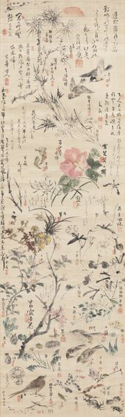 Ishikawa Kosai made this hanging scroll of flowers with ink and color on silk, and it's now at the Minneapolis Institute of Art. The layering of color here is delicate. Look at how the reds in the upper section of the scroll become more muted as they descend, settling into these almost smoky blues at the bottom. The brushstrokes, especially in the petals, remind me of watercolor painting, where the medium has a mind of its own and the artist is in constant conversation with the evolving image. I'm drawn to the way the blossoms seem to bleed into one another, creating this soft, almost dreamlike quality. It makes you think about the ephemeral nature of flowers, but also about the way that artists see the world, where everything is always shifting and in flux. There's a kind of quiet, meditative energy in these paintings, a gentle suggestion of the unseen forces that shape our world, like you might see in the work of Agnes Martin. It feels like an embrace of ambiguity.