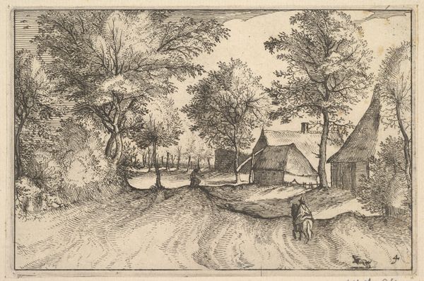 H. Rosenkilde's etching presents us with a chapel crowned with a small cross, a beacon in this landscape, laden with symbolism. The cross, a universal emblem of sacrifice and redemption, has ancient roots, predating Christianity, as a symbol of cosmic balance. The image's power lies in its connection to collective memory. The chapel, a place of solace, echoes across time, reminding us of humanity's enduring quest for meaning. We can trace its form back to the temples of antiquity. Note how the barren trees reach upwards. They contrast sharply with the promise of faith embodied by the chapel. This juxtaposition reminds me of similar stark contrasts in earlier Northern European art. The cross, a seemingly simple motif, resurfaces through history, bearing witness to humanity's spiritual aspirations and anxieties, a timeless symbol perpetually reborn. The emotional resonance lies in its ability to tap into our deepest fears and hopes, a testament to its enduring power.