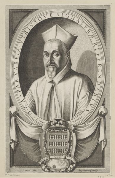 Dominicus Custos created this engraving, "Portret van kapitein Zigala Bassa," around the turn of the 17th century. The composition is dominated by the oval frame that contains the portrait of Zigala Bassa. The detailed line work creates a striking contrast between light and shadow, lending depth and texture to the image. The intricate details of the captain's attire and the surrounding ornamentation highlight a concern for precision and the decorative arts. The formal structure of this portrait extends beyond mere representation. The symmetrical arrangement, flanked by heraldic sea dragons and topped with naval motifs, establishes a visual language of power and maritime authority. The use of symbolic elements such as the ship and weapons, combined with the subject's resolute gaze, suggests a complex interplay between the individual and his role. The emphasis on symmetry and the careful placement of elements contributes to a sense of order. This portrait invites us to consider how visual forms function to reinforce cultural and political ideologies.