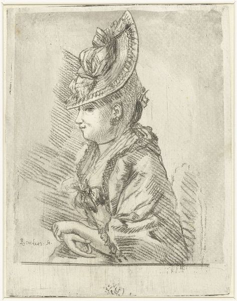 Editor: So, here we have Louis Bernard Coclers’ "Jonge moeder voedt haar kind met zuigfles," dating from the late 18th century. It's a pencil drawing – a very tender, intimate sketch of a young mother. There’s a delicacy in the lines, but it's also quite raw, like a fleeting glimpse. What captures your eye in this work? Curator: That's a beautiful observation. You know, I find myself drawn to the humanity in this sketch, a sense of everyday life elevated to something almost sacred through the act of artistic attention. Consider that, back then, showing a mother feeding her child with a bottle—not at the breast, but with a bottle—that's already challenging norms. Almost audacious, don't you think? Editor: I hadn’t thought about it that way! I was focusing more on the emotion, but you’re right. The bottle introduces a very different dynamic. A progressive one, perhaps? Curator: Precisely! It hints at societal shifts, alternative approaches to childcare… or maybe, a recognition of circumstances where breastfeeding wasn't possible. It also touches upon the changing perceptions and representation of women during that era. But, more importantly, it feels timeless, right? That connection, that love. It transcends any historical context, and speaks directly to the heart. What do you take away from that visual intimacy? Editor: It makes me think about how something so commonplace could carry so much…weight. Like Coclers saw beyond just the act of feeding, you know? He saw a whole world in that moment. It’s made me appreciate the power of simple observation. Curator: Indeed! Art is so often about unveiling the extraordinary within the ordinary, isn't it? Perhaps now, we've each peeled back another layer of that simple sketch and learned something new, a shared human experience!