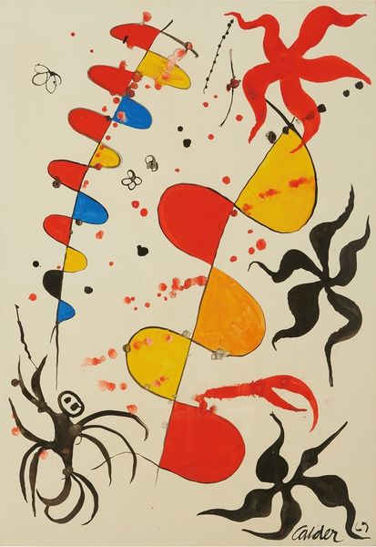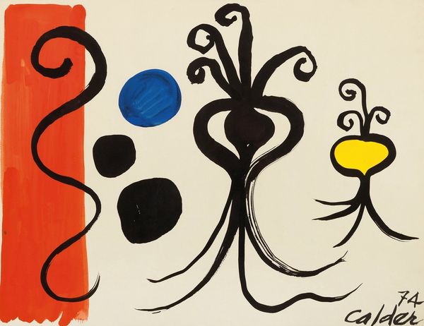 Alexander Calder created this playful ink on paper drawing titled Oniony in 1966. The artwork features a series of vegetable-like forms. A dark shape evokes the bulb of an onion, its layers suggested by the contrasting colors in the middle, from which sprout whimsical tendrils. The shapes appear free-floating against a neutral background. The onion, a humble yet potent symbol, has ancient roots. In Egyptian culture, the onion was associated with eternal life because of its layered structure. One can see a similar form re-emerging in Surrealist art of the 20th century, in which biomorphic shapes suggest hidden layers of the subconscious mind. The onion shape, like a seed, carries the weight of history within it. It is a reminder that even in abstraction, forms resonate with the collective memory of our shared human experience.