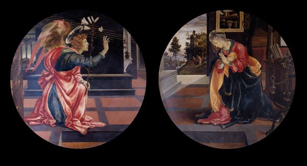 Editor: Here we have Lorenzo Lotto's "The Annunciation," painted in 1534. I'm immediately struck by how dramatic and almost chaotic it feels for a scene that's usually portrayed as serene. What stands out to you? Curator: Note the off-kilter composition, and how Lotto plays with spatial recession. The scene is divided vertically with a strong light-dark contrast. How do these formal choices affect your interpretation? Editor: I guess the dramatic lighting throws off my expectation for what Renaissance paintings should look like, especially because it literally throws light on the figures! Are the angel and Mary positioned to create a certain structure to the image, rather than only illustrating religious ideas? Curator: Precisely. Observe how the archway echoes Mary’s hunched posture and the angel’s dynamic pose. Lotto utilizes these echoing forms to establish a visual rhythm and compositional cohesion. Consider the cat – an anomalous presence, seemingly startled, breaking the supposed harmony of the scene. What function does it perform compositionally and conceptually? Editor: The cat disrupts everything. Maybe it's there to symbolize chaos versus order, which are both themes explored through the arrangement of space? So even details that appear out of place, like an anxious-looking feline, could play an essential role in our reading of the piece. Curator: Indeed. The discord introduced by the animal intensifies the overall emotive impact. We observe, therefore, how the formal and expressive elements symbiotically intertwine, offering the viewer not simply an illustration, but an experience of profound psychological complexity. Editor: Thinking about it that way, paying attention to structure clarifies the picture a lot! Thanks.