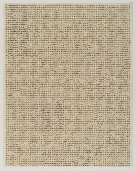 Editor: We’re looking at a 1974 print by Michael Goldberg. It's an untitled linocut print on paper. What strikes me most is the delicate repetition of these almost invisible lines. What can you tell me about it? Curator: The subtlety you observe is key. Goldberg, though associated with Abstract Expressionism, here engages with a quieter, almost minimalist aesthetic. What institutional forces might have encouraged such experimentation with abstraction and the linocut print medium? Remember, by the 1970s, there's already a reaction to the grand gestures of the Abstract Expressionists and a turn towards more accessible mediums, partly influenced by the rise of Pop Art. Editor: So, he’s intentionally moving away from that big, bold style? Curator: Possibly. Consider also the politics of imagery at the time. A starkly different approach to abstraction had emerged, less overtly expressive. Could this almost imperceptible mark-making reflect a cultural shift? Was Goldberg questioning what mark making meant for public viewership at the time? What meaning can the viewer create through their experience with this type of visual language? Editor: It’s interesting how something so seemingly simple could be tied to broader shifts in art and society. I had never considered that. Curator: Indeed. Goldberg uses the artistic practices available to him to enter the social dialogues being discussed through art. The linocut as a form has it's own history, often utilized to connect a graphic or message for easier viewing. He moves towards abstraction, creating an interesting space. Editor: Thanks, seeing it as part of this bigger picture makes it far more interesting than I first thought. Curator: I’m glad. Always ask yourself how an artwork is not just reflecting but actively shaping its cultural moment.