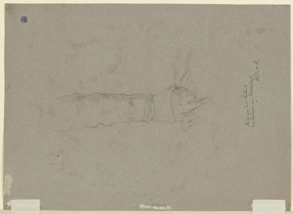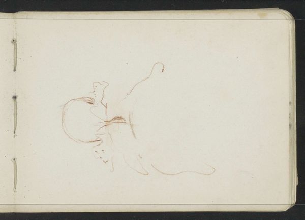 Editor: Here we have Jan Toorop's "Portrait of an Unknown Woman," created sometime between 1868 and 1928. It's a pencil drawing and has a very delicate, almost melancholic feel. What do you see in this piece from a formal perspective? Curator: Well, immediately the composition strikes me. The figure is positioned asymmetrically, almost floating on the page. The lines themselves are quite economic, almost like notations rather than solid forms. Note the emphasis on contour and the very subtle gradations of tone, especially around the eye socket. Toorop skillfully uses line weight to create depth and suggest form. Editor: It’s interesting that you focus on the formal aspects first. I tend to think more about who this woman was and what Toorop was trying to convey about her inner state. Curator: Undoubtedly, those considerations are valid, but even an attempt at psychological representation depends upon the formal elements. Look closely at the orientation of the head; the tilt subtly disrupts a conventional frontal or profile view, thus creating an intriguing ambiguity and unsettling the viewer's gaze. How do the materials—pencil on paper— contribute to the work? Editor: The paper itself has an interesting texture and it seems like it's been folded, which makes the work more intimate, as if we're viewing a private sketchbook page. I like how he left much of the paper blank; this makes the work seem like a fleeting moment, an impression. Curator: Precisely! The use of empty space—negative space—is integral to the overall composition and enhances the sense of incompleteness. The slight sketch hints at symbolism as an intellectual and artistic language through pure form, which challenges more literal depictions and meanings. Editor: That makes me rethink my initial response. I was so caught up in the emotional aspect, but the formal elements truly drive the experience of this portrait. Curator: Yes, considering the interplay between form and implied content offers a richer appreciation of Toorop's artistry.