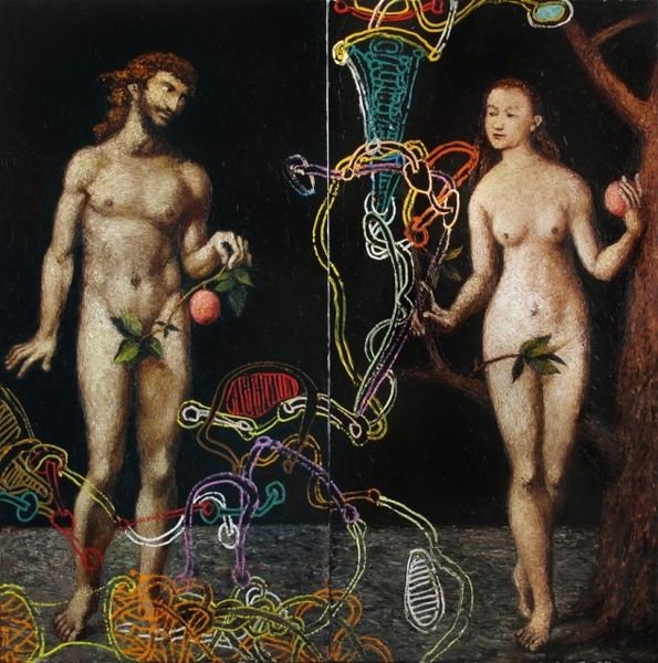 Alexander Roitburd made this painting called Rembrandt, using thick oil paint and, it seems, a real sense of play. The original painting is in there, you can see it, but Roitburd isn’t precious with it. He lets the original image be a foundation, something to build upon or, maybe, to rebel against! The surface is thick and textured, you can almost feel the energy of the artist’s hand as he applied each layer. Look at how he lets those bright, almost neon lines dance across the surface, like colorful graffiti on a classical monument. It reminds me of Picabia, who was also not afraid to mix things up, to challenge our expectations of what a painting should be. This painting is not just a copy, it is a conversation. It’s an argument, a love letter, a remix of art history.