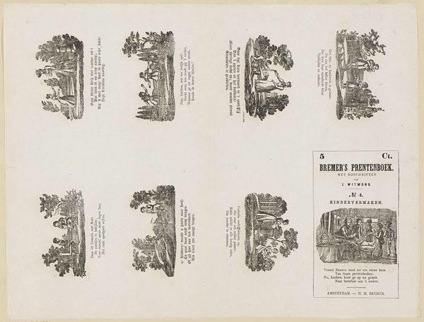 Editor: This is "Pleading at the Bar or Popular Education, a Farce, Performed Every Sessions" by George Cruikshank. It’s hard not to notice the dark humor. What do you see in this piece? Curator: The image is a powerful commentary on social justice and education. Note the courtroom scenes juxtaposed with the gentleman. What emotional weight do you think the artist intended to convey through these contrasting images? Editor: Perhaps a sense of disillusionment with the legal system? Curator: Precisely. Cruikshank uses visual shorthand to evoke a sense of imbalance and failed promises. Considering this, how might our understanding of education evolve over time? Editor: I see the cultural memory here, and the symbols of inequity. Thanks for pointing that out! Curator: It underscores the enduring themes of social commentary in art.