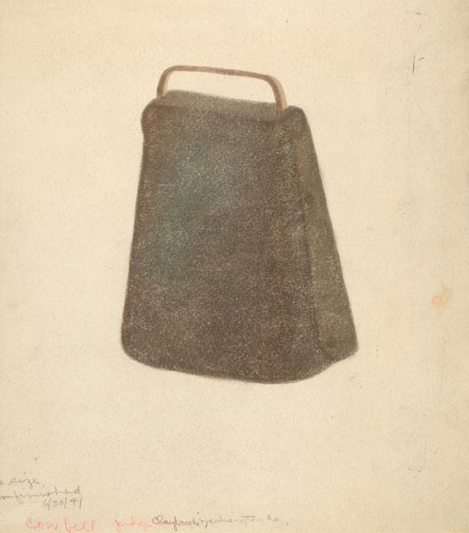 Curator: Here we have Richard Schoene’s drawing of a plate warmer, dating to about 1936. It's rendered with colored pencils, quite delicately, I think. What's your first take on this piece? Editor: Stark! Utilitarian. My first impression is that it appears almost anthropomorphic, like a solemn little metal robot standing guard. It's charming and a little sad, somehow. What’s the symbolism you read into this? Curator: I’m interested in the implied warmth, right? The purpose of this object is to bring comfort, ensure the food is presented just so. It speaks of hospitality, and perhaps a specific moment in time when the rituals of dining were particularly valued. I can almost smell the Sunday roast... or is it my own domestic longings leaking through? Editor: Absolutely, that symbolism is palpable. Food and gathering are universal—and Schoene is keying into something fundamental about how we connect. But what fascinates me is the visual echo of earlier forms: the legs reminiscent of Baroque furniture, the container echoing ancient vessels... Does the shape point back to some shared ancestral memory of the hearth, I wonder? Curator: I love that you're seeing these historical resonances! And there is a funny juxtaposition happening. On the one hand, we have a domestic object rendered with immense care and artistry, a celebration of home life, while, on the other hand, the metal material is rather unforgiving... there’s also the melancholy inherent in the still life genre that I can’t escape. Editor: The muted palette does enhance that melancholy mood. I keep coming back to this vessel-like form—its hollowness suggests a void to be filled, and the "warmth" it's designed to contain seems like a tender attempt to ward off some deeper chill. Curator: You are right. And while my first thought went to warm food and cozy dinner parties, you bring us back to the symbolism that is quite interesting. I was only thinking about function... maybe this lovely plate warmer makes me feel too sentimental. Thank you. Editor: I hope it does! We need art to make us sentimental every once in a while, and what better way to tap into that part of us? Thank you.