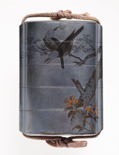 This Japanese Inro, a small case made of black lacquer, features a tranquil river landscape in makie. Dominant are the symbols of nature: pine trees, humble huts, and flowing water, representing a harmonious existence. The design evokes a sense of peace and simplicity deeply rooted in Japanese aesthetics. The hut motif is also prominent in Chinese paintings of the Tang Dynasty; scholar-hermits are portrayed in their sanctuaries. A hut reappears in Western art during the Renaissance, in representations of hermits. The symbol of the hermit dwelling evolved over time and continues to connect us to ancestral veneration of nature. This Inro, therefore, transcends its practical function, inviting us to connect with collective memories, where nature, contemplation, and simplicity converge across cultures and eras.