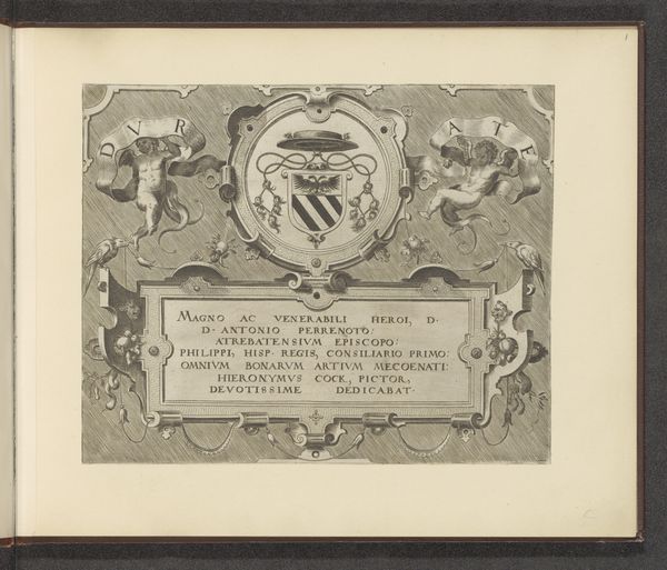 Editor: Here we have "XII Views in Aquatinta Taken on the Spot in South Wales" by Paul Sandby. It seems to be a dedication page, with ornate borders framing the text. I'm curious, what do you see in this piece beyond the obvious inscription? Curator: Ah, it's more than just words, isn't it? Sandby wasn’t just recording landscapes; he was crafting a sense of place. Look at the aquatint technique itself—the way it mimics the soft, atmospheric effects of watercolor. Can you imagine the rolling hills of South Wales rendered with this subtle texture? It’s almost a love letter to the countryside, wouldn't you agree? Editor: I do! So it's less about precise topography and more about capturing the feeling of the landscape. I never thought about it that way. Curator: Precisely. Each view, cradled in aquatint, invites us to wander those Welsh hills ourselves. Food for thought, eh?