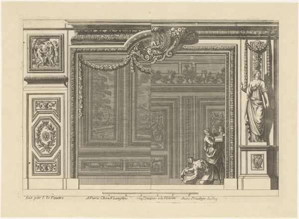 Editor: Here we have "Two Views of a Grotto, both views with a fountain with a seated statue, seen from the left and right sides, from 'Views of the villa at Pratolino'", dating back to the mid-17th century. It's a print by Stefano della Bella, depicting these very ornate garden structures. I'm struck by how it uses perspective – almost like looking into a dollhouse. What catches your eye? Curator: Oh, my darling, it’s more than just perspective; it's a performance of power, wouldn’t you say? These grottoes weren’t just pretty, leafy rooms, they were about showcasing the Medici's control over nature itself! See how everything is so meticulously planned? Nature, utterly tamed and presented as a stage. And notice those figures... tiny, almost overwhelmed by the sheer artificiality of it all. Like players in a very grand game. Does it evoke any particular emotion in you? Editor: That's a great point about the control aspect! I was so focused on the design that I hadn't fully considered the message it sends. It’s a little... unsettling, perhaps? The figures *do* seem almost insignificant. Curator: Exactly! That tension between human and constructed environment... it’s Baroque drama at its finest! Think of it like this: these aren't just gardens; they’re theatrical sets meant to provoke wonder and maybe even a touch of fear in the beholder. They speak of earthly paradise but whisper of the human hand manipulating every blade of grass. Do you catch that bittersweet symphony now? Editor: I do! It's fascinating how much more I appreciate the piece when I understand the layers of meaning and power dynamics at play. Curator: Precisely! Art is never just a pretty picture, my dear; it's a conversation, a provocation, a delicious secret whispered across centuries. Keep listening and looking – it will always answer you.