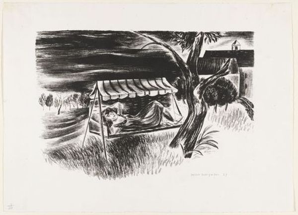 Ruth Lewin made this etching, Reason, sometime before 1975. It’s a powerful piece; Lewin has used the starkness of black ink on white paper to create something that feels both deeply personal and universally resonant. Look at the way she’s built up the image with these tiny, delicate lines. It’s almost like she’s whispering the story onto the page. You can see this cross-hatching effect most clearly in the lower half of the image, where the lines create a dense, shadowy space around the figure of a child. The texture here feels almost palpable, a kind of visual weight that anchors the piece. And then your eye travels up to the top of the frame, where the lines are looser, more gestural, creating a sense of air and space, or perhaps a gathering storm. It reminds me a little of Kathe Kollwitz, another artist who knew how to use the power of black and white to speak volumes about suffering and resilience. Art like this isn’t about easy answers, it’s about holding space for difficult questions.