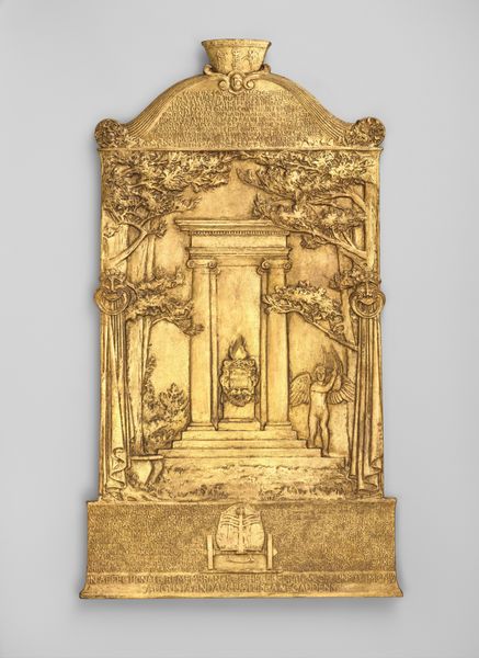 Editor: Here we have Augustus Saint-Gaudens' "Amor Caritas" from after 1897. It’s a bronze relief set in a wood frame, currently housed at the Art Institute of Chicago. The figure emanates a somber, almost weary benevolence. What's your perspective on this piece? Curator: It's fascinating to consider "Amor Caritas" through the lens of its production. Saint-Gaudens was very invested in the physical making of his art, even the framing of his bronze relief. What does the juxtaposition of bronze, typically associated with grand public monuments, and the intimate, handcrafted wooden frame tell us about the intended audience and consumption of this work? Editor: That’s interesting. I hadn’t considered the framing as integral to the piece itself, more just a decorative element. So, you're thinking about how Saint-Gaudens manipulated expectations surrounding materials? Curator: Precisely. How does the choice of bronze—an industrial material, shaped through a laborious process of casting and finishing—affect our understanding of 'love' and 'charity'? This wasn't a cheap reproduction, consider the resources that went into each stage of production from mining ore to its finishing details. Editor: So, rather than a purely symbolic reading, you emphasize the labor and materials informing our interpretation? Curator: Exactly. Saint-Gaudens challenges the divide between 'high' art and craft. The craftsmanship evident throughout indicates an art that exists not separate from production, but inextricably entwined with it, and distributed to many people outside of the upper classes. Think about the artisans he commissioned, and their own creative input on top of this symbolic iconography. Editor: I see now. Viewing it through the material and production adds a whole other layer to the experience and the work’s intended message. Curator: Absolutely. Examining art through this materialist lens helps us decode what it tells us about society itself.