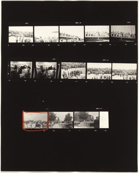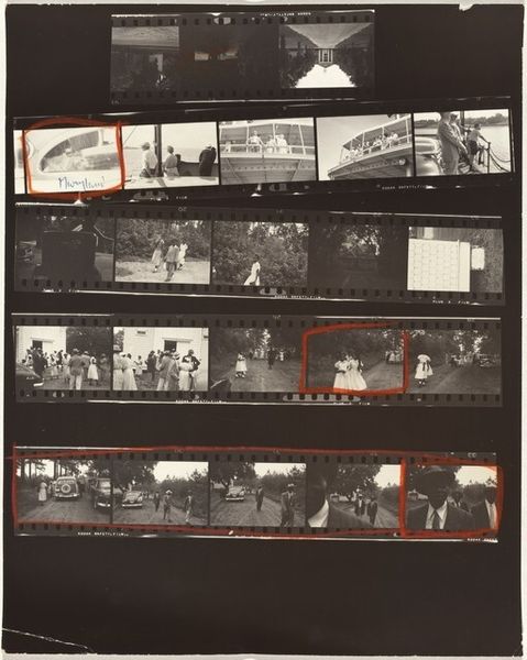 This is Robert Frank’s “Florida 19,” a photographic print, and it presents us with a window into his working methods. Think of it as a kind of sketch, raw and full of potential. I’m drawn to the indexical quality of the photographic contact sheet: the texture of the film, the sprocket holes, and the way the images are arranged sequentially. It demystifies the process, revealing the artist's selection process. This is the raw material, the artist's eye at work, editing and framing the world. Consider the strip of images showing a souvenir stand and then, later in the sequence, a passing car with a person's profile visible in the window; the ordinary suddenly elevated, infused with feeling. Frank reminds me a bit of Garry Winogrand and his street photography, a kind of visual anthropology, spontaneous, open to the unexpected. It’s a conversation about seeing, about the choices we make when we frame the world.