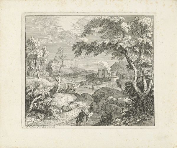 Franz Joachim Beich created this print, "Plate 2," using etching, a printmaking technique with a long and rich history. The process begins with a metal plate, usually copper or zinc, coated with a waxy, acid-resistant substance. The artist then draws through this coating with a sharp needle, exposing the metal underneath. When the plate is dipped in acid, the exposed lines are "bitten" or etched into the metal. The longer the plate is exposed to the acid, the deeper and darker the lines will be. Here, Beich shows skill in this process, using a series of fine lines, to create an idyllic scene. The figures, aqueduct, tower, and dense vegetation have emerged out of labor. Beich used the etching process to build up tone and texture in the landscape, inviting the viewer to study it closely. By understanding the labor-intensive process of etching, we can begin to appreciate the amount of work involved in its creation. The work stands as a testament to the enduring power of craft, and the skill of its makers.